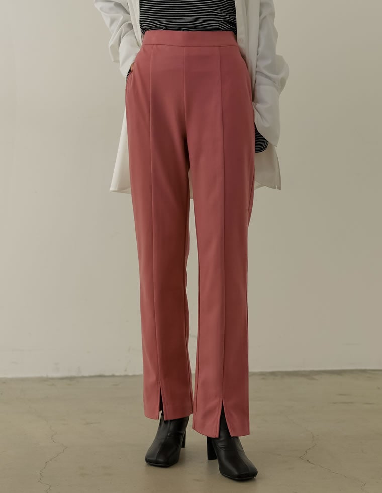 滑らかな肌当たりの起毛ジャージー生地を使ったスリットパンツ。