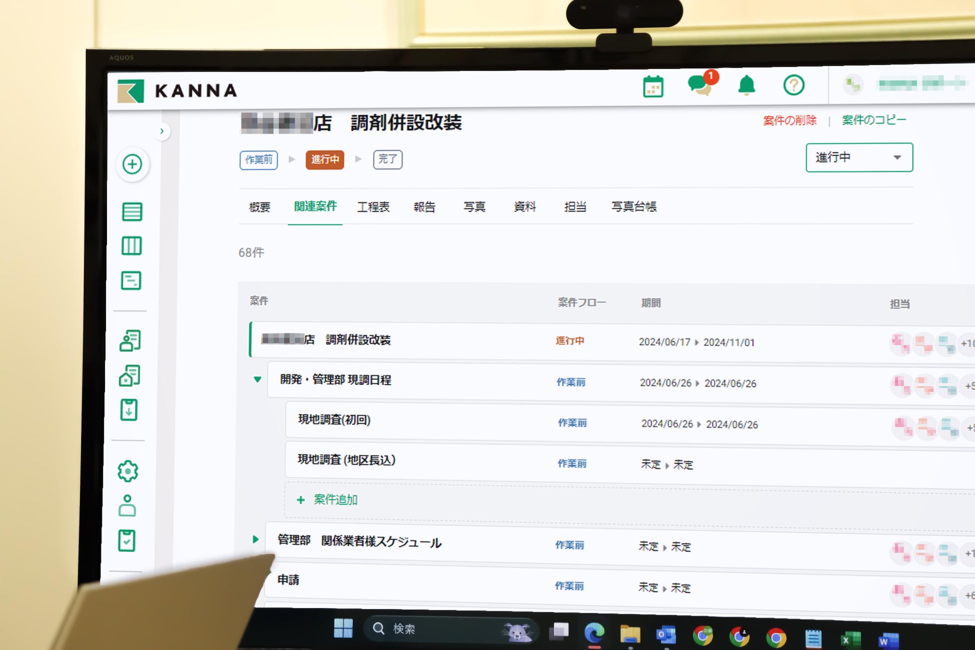 この度、このような課題を解決するため、セキ薬品に現場DXサービス「KANNA」の導入を決定いただきました。これまで膨大な時間を費やしていた工程の作成業務をデジタル化し、作成時間の大幅軽減だけでなく、情報登録や更新をすると瞬時に関係者全員へ周知できるようになり、メールや電話の手間も省けるようになりました。