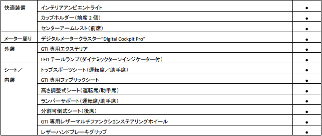 ✓GTIの伝統を感じられるインテリア空間に先進装備を数多く採用