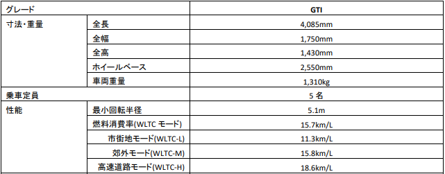 新型「Polo GTI」についての主要装備表や諸元表は次頁以降をご参照ください。