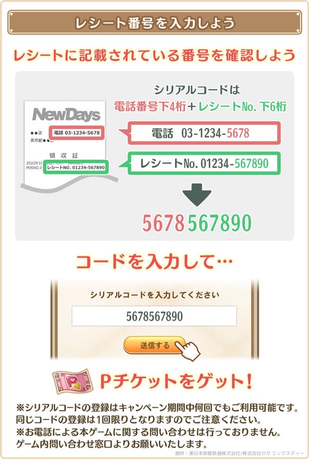ゲームへの日々のログイン以外にも、JR東日本の各駅でのチェックインや、NewDaysでお買い物した際のレシート記載番号を入力することで、ゲーム内で使用できる限定チケットが手に入り、あなただけの村へカスタマイズして楽しむことができます。