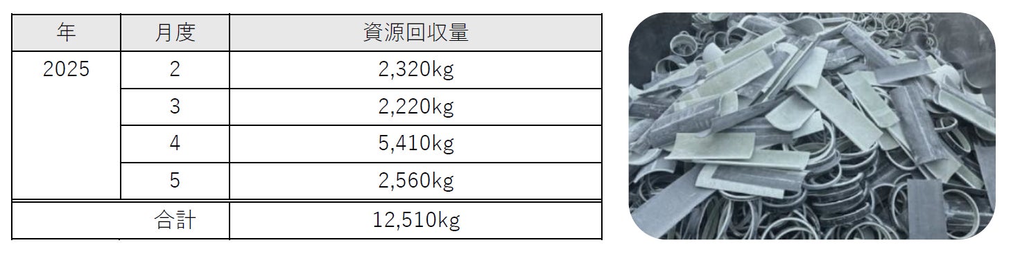 2025年2月のプロジェクト開始から4か月で、合計12トンを超えるFWPコアやその他様々なFRPパイプ製造時の端材を資源として回収し、廃棄を回避しました。従来こうした廃棄物は埋立処分され、最終処分場の逼迫や環境への悪影響が懸念されていました。今回のスキームにより、再資源化が可能となり、廃棄に依存しない処理体制の構築が進んでいます。