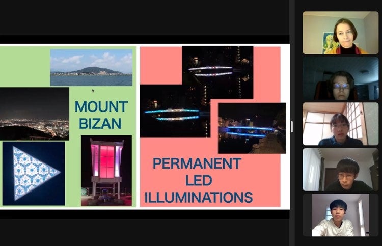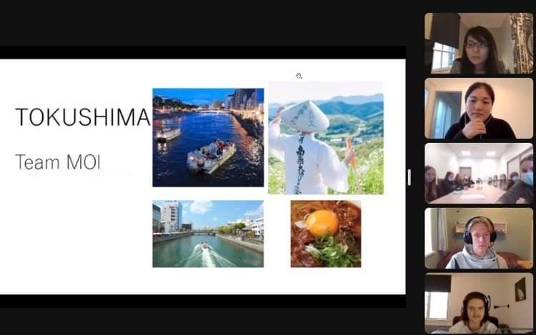 徳島市在住の中高生がフィンランド・イギリスの同年代の子どもたちに、自分たちの制作した映像やゲームを使って、徳島市の魅力を英語でプレゼンを行いました。
