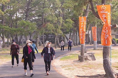 チャレンジデーは、日常的に運動・スポーツを楽しむきっかけづくりを目的に、毎年 5 月の最終水曜日に世界中で実施される住民総参加型スポーツイベントです。人口規模がほぼ同じ自治体同士が、15分間以上継続して運動やスポーツを行った住民の参加率を競い合うというルールで、敗れた自治体は、相手の旗を庁舎に掲揚して健闘を称えます。