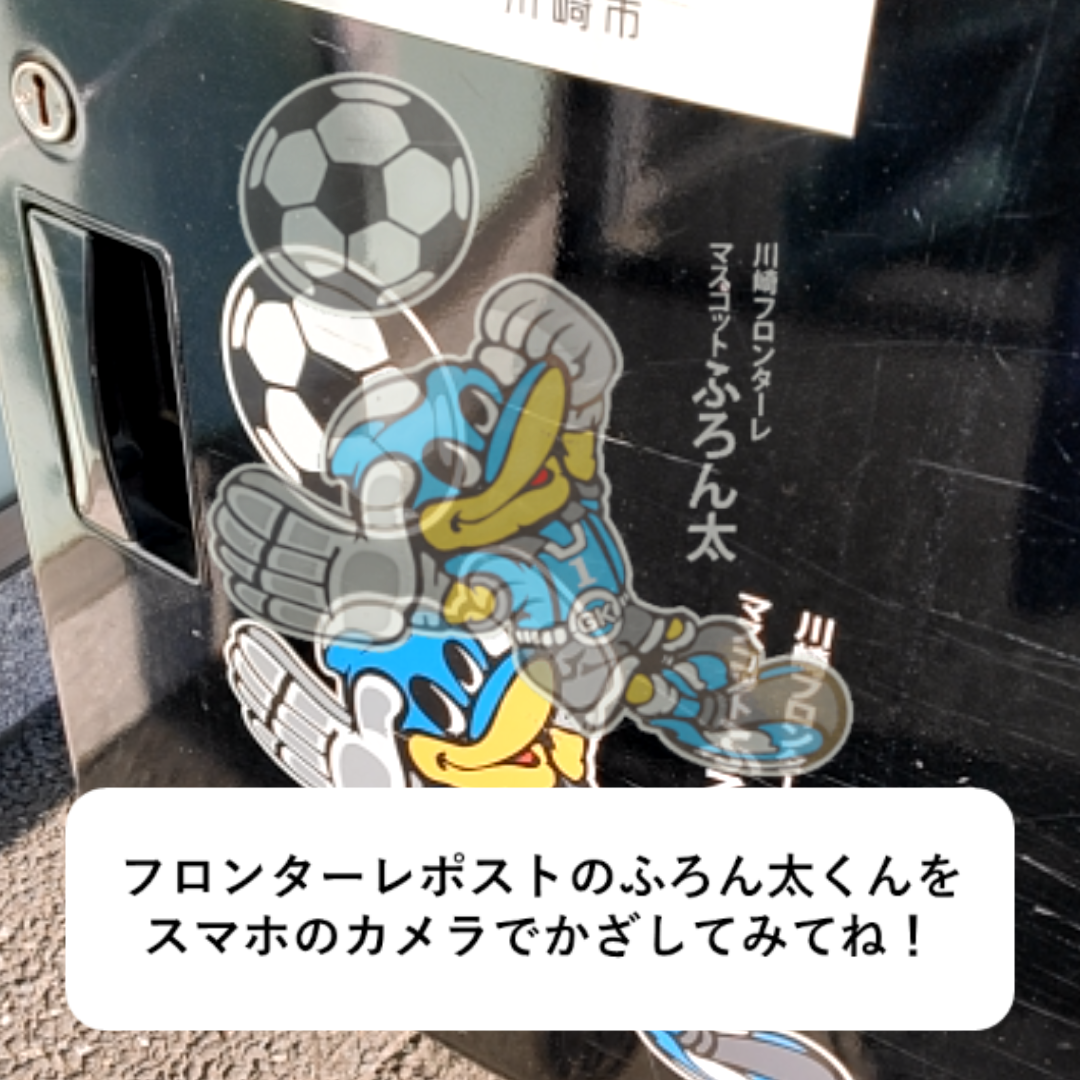 登戸駅の駅前広場にある川崎フロンターレカラーの郵便ポストにスポットがあります。