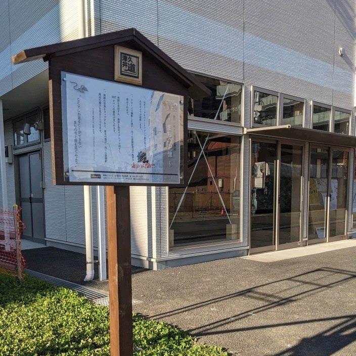 登戸駅から小田急線の線路を西側に進み、区画整理が行われているエリア中程にスポットがあります。高札を探してみてください。