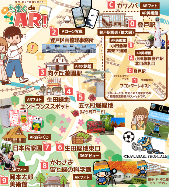 ARスポット :登戸駅、川崎市岡本太郎美術館、川崎市立日本民家園、