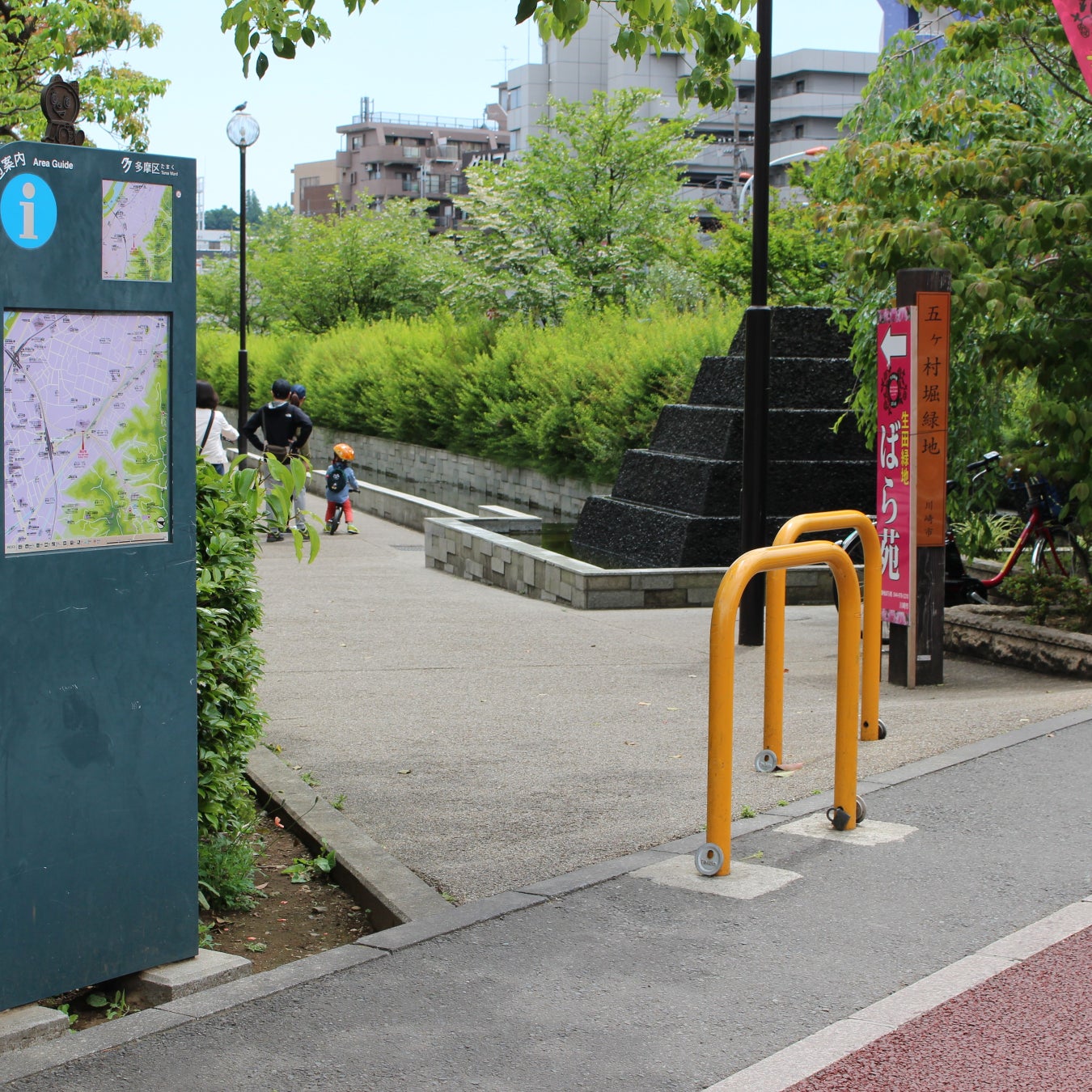 生田緑地エントランススポットから生田緑地方向に進んだ先にある五ヶ村堀緑地の入口にスポットがあります。