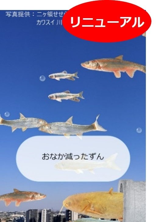 多摩川の魚たちが泳ぎ回るAR水族館が出現します。黄金色のなまず「たまずん」もしゃべりながら土管から這いずり出てきます。