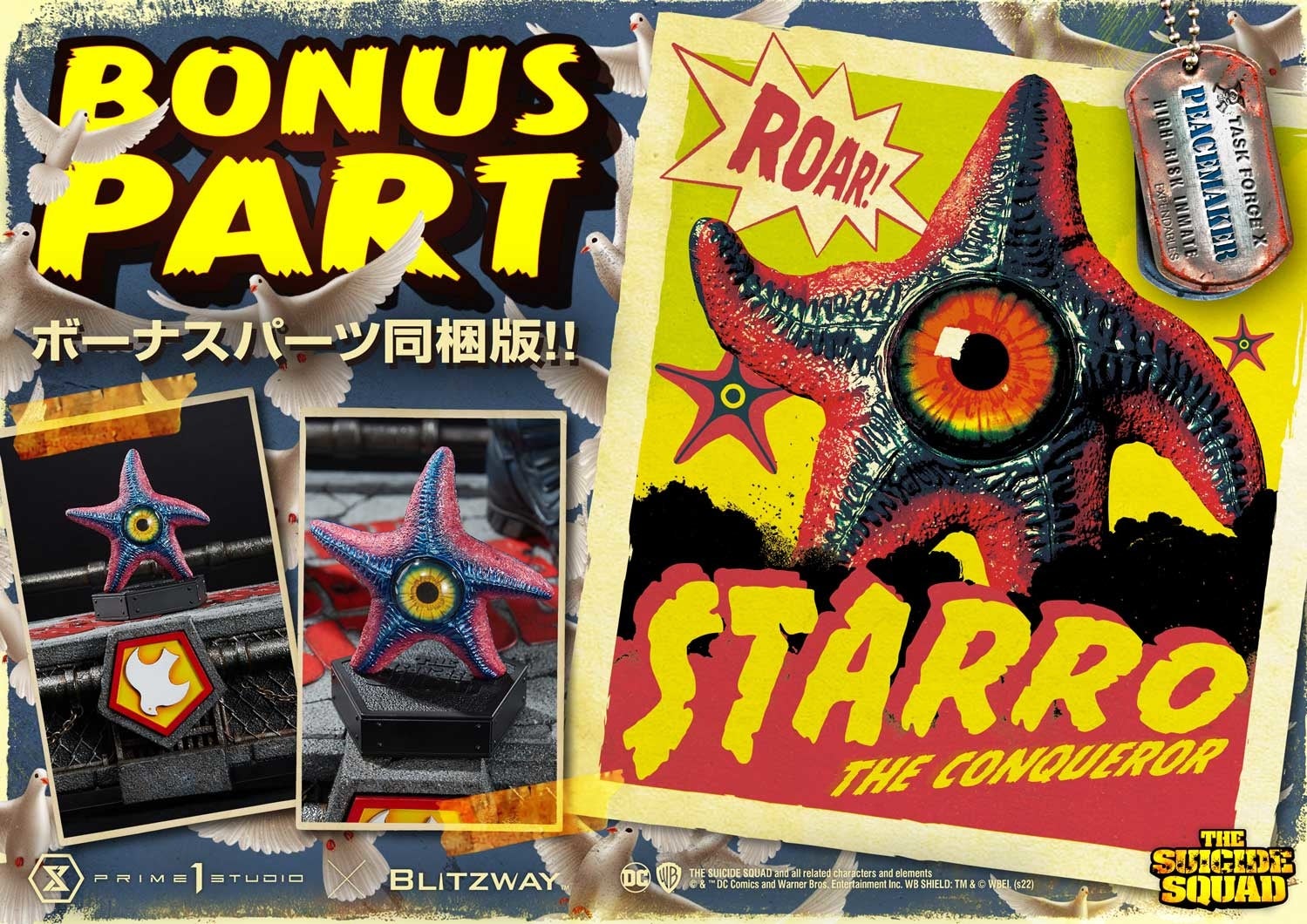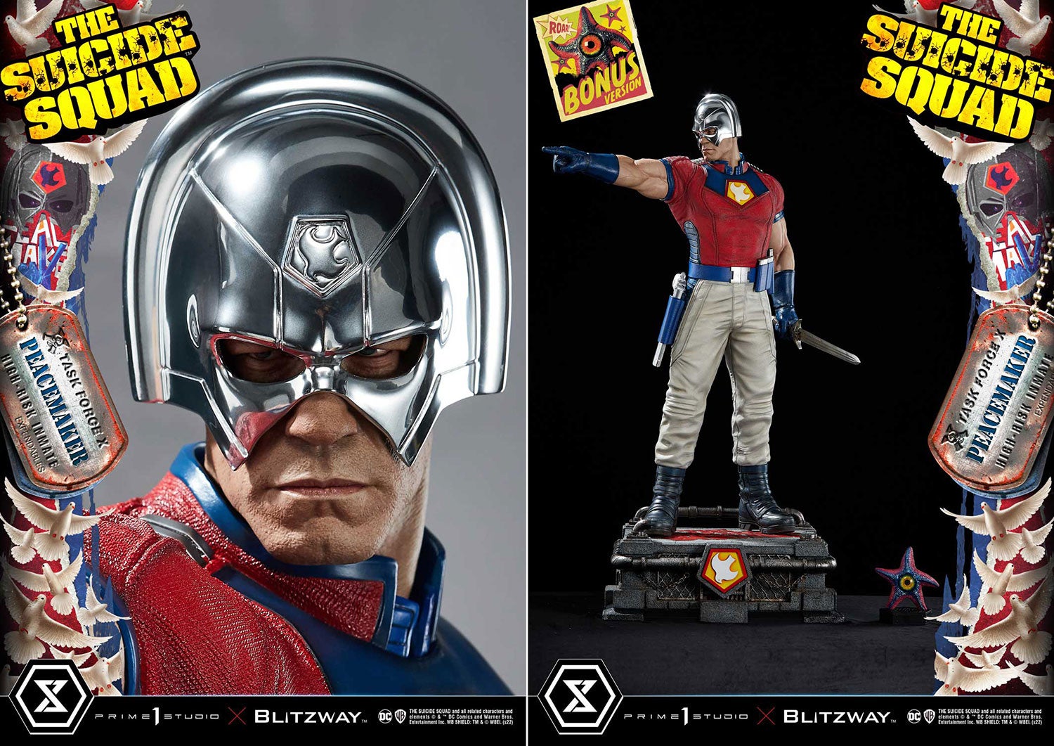 プライム1スタジオとブリッツウェイが、再び魅力あふれる悪党をコラボ作に選びました。筋骨隆々、精密な射撃、過激すぎる平和主義。天才ジェームズ・ガンの『ザ・スーサイド・スクワッド“極”悪党、集結』より、ピースメイカーの爆誕です!