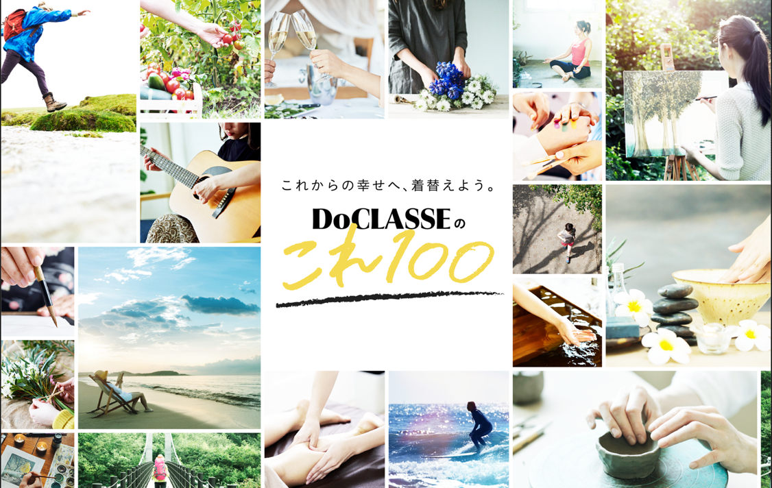 このような時代背景を受け、DoCLASSEでは、ミドルエイジ女性が“これからの人生でやりたいこと”を叶えるお手伝いをしたい!これからの人生をもっと輝かせるきっかけと出会って欲しい!という想いのもと、大人女性を応援するプロジェクト「DoCLASSE これ100プロジェクト」を発足いたしました。