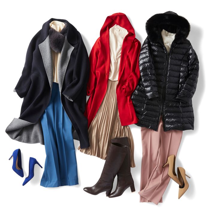 DoCLASSE最大の特徴は、大人の女性が求める機能性の高さ。体形カバーだけでなく、暖かさをキープしつつ着やせデザインのアウター、インナーが透けにくいTシャツなど、バラエティに富んだラインナップとなっていています。