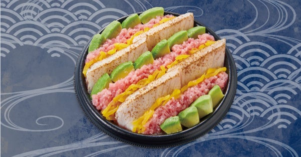 「炙りびんちょう」「まぐろたたき」と相性の良い「アボカド」や「たくあん」を彩りよく盛り付けました。