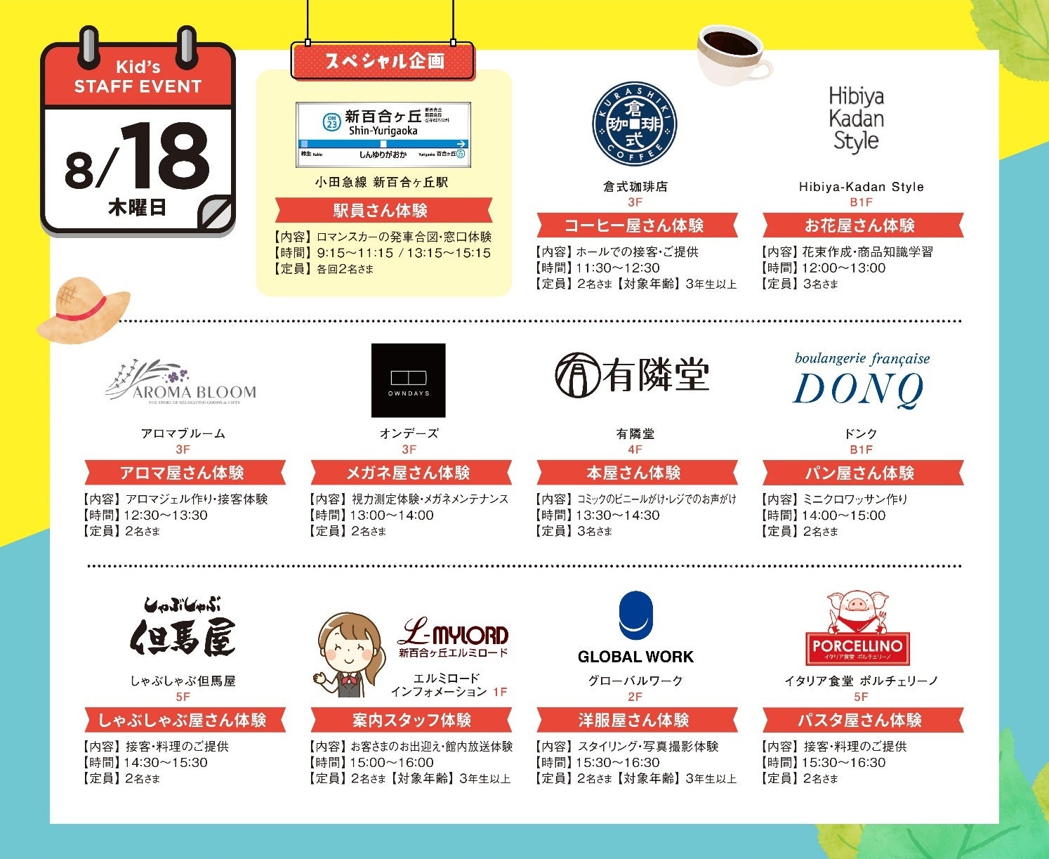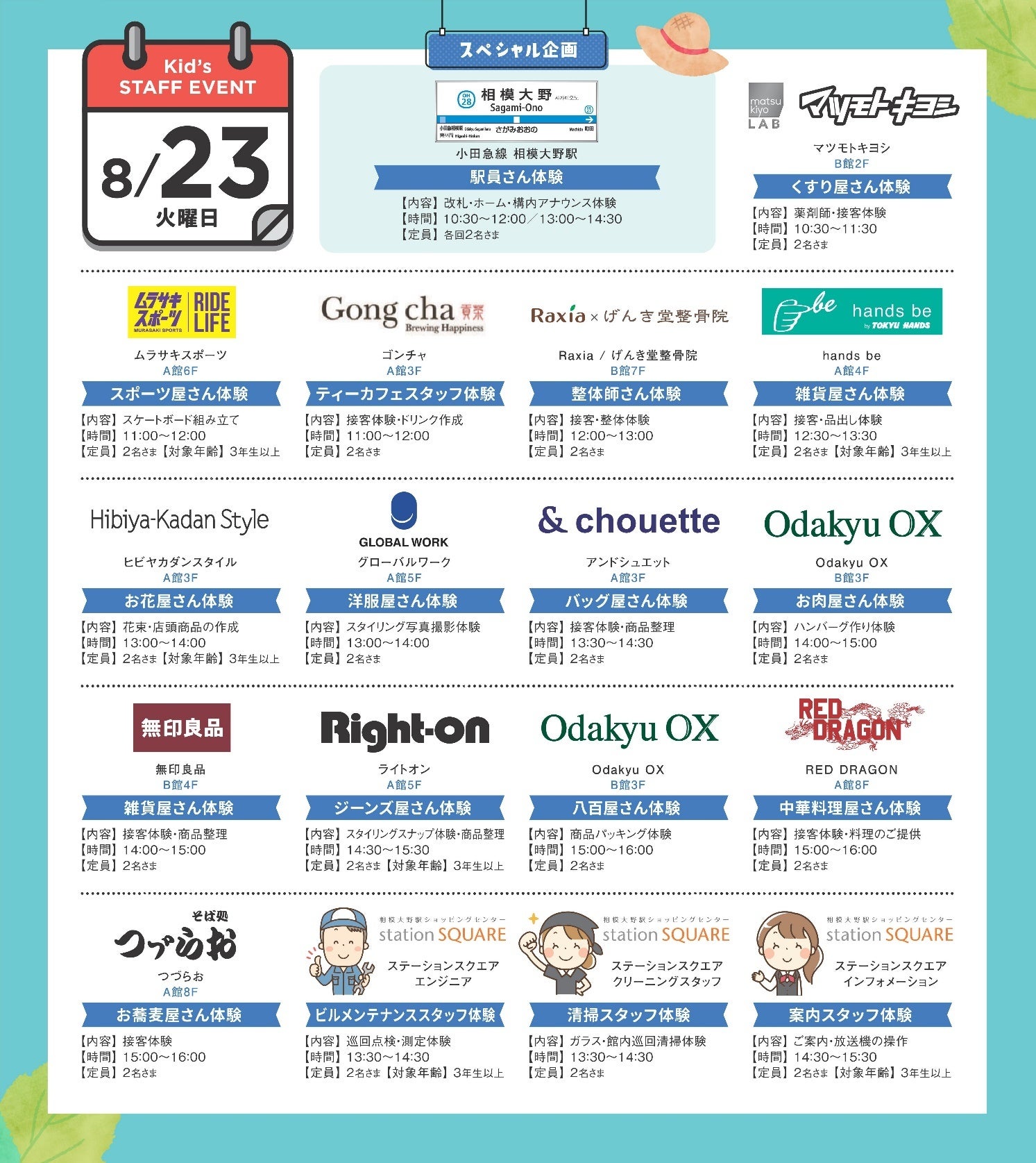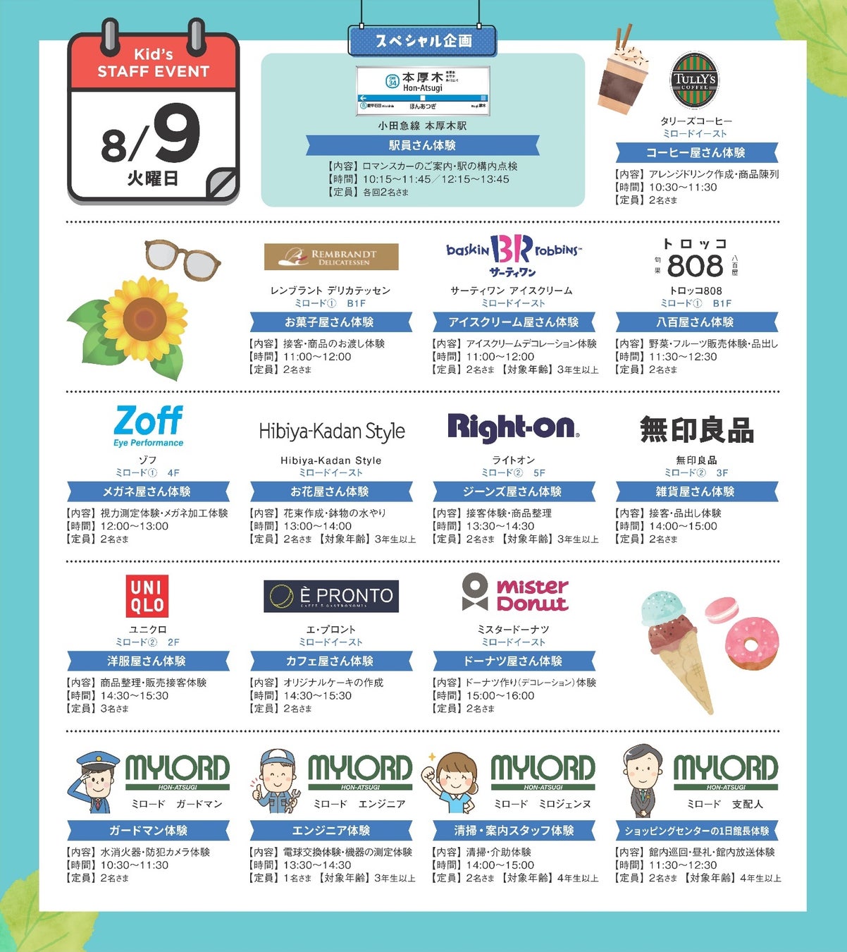 <小田急のショッピングセンター6施設&対象駅合同の夏休み特別企画>小学生限定!「おしごと体験イベント」開催 7月1日(金)よりWEB応募受付開始!