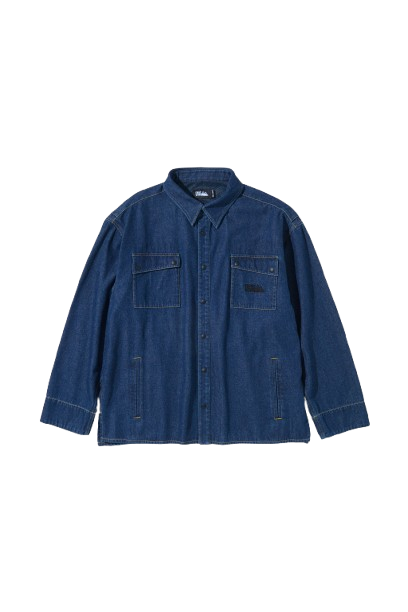 ワークウェアのタフなディテールと、洗練された都会的なシルエットを融合したデニムシャツジャケット。フロントとサイドに立体感のあるフラップ&スラッシュポケットを配置し、実用性とデザイン性を両立。背中にはアクションプリーツを取り入れ、動きやすさを確保しながら、ラフすぎない印象に。裾はわずかにラウンドさせたスリット入りで、レイヤードした際のシルエットにも配慮しています。配色ステッチとオリジナル刺繍ロゴが、無骨さの中にブランドらしい存在感を添えています。
