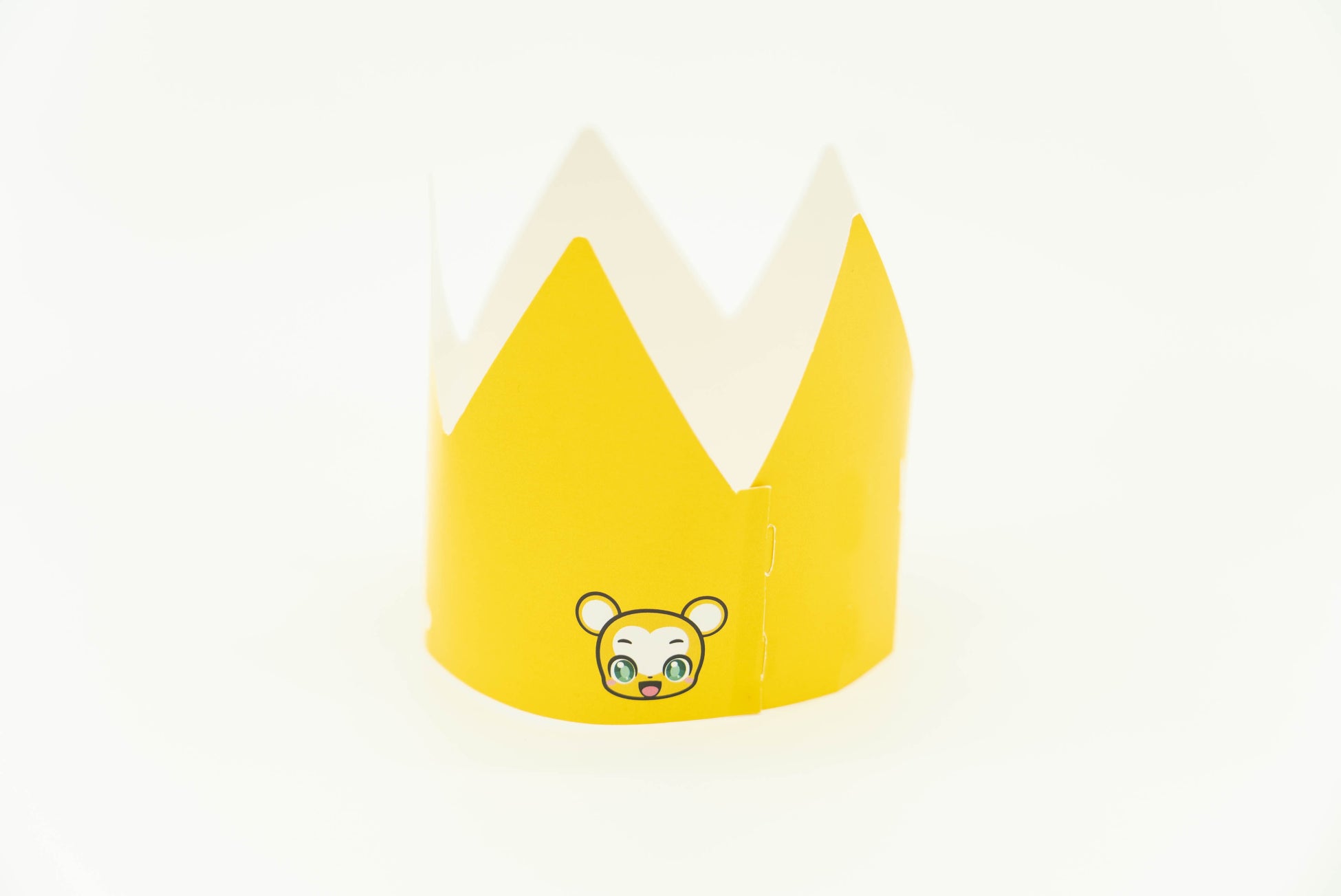 次に、そのタキシードクマーバとお揃いで、お子さまが冠れる王冠のかぶりもの。クマーバと一緒に、お子さまの「本日の主役!」感を演出できます。