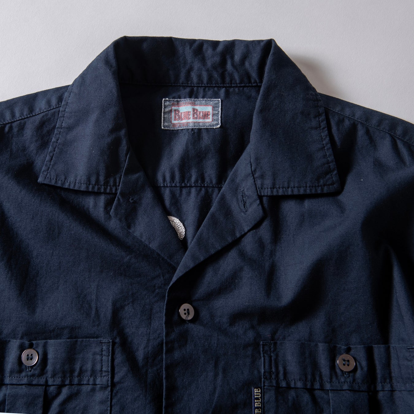 ディテール面では、ボックスプリーツ仕様の胸ポケットを採用。ヴィンテージの中でも一部に見られるこのディテールは、ワークやミリタリーを背景に持つ〈BLUE BLUE〉ならではのフィルターを通したもので、全体にどこかタフな表情を添えています。