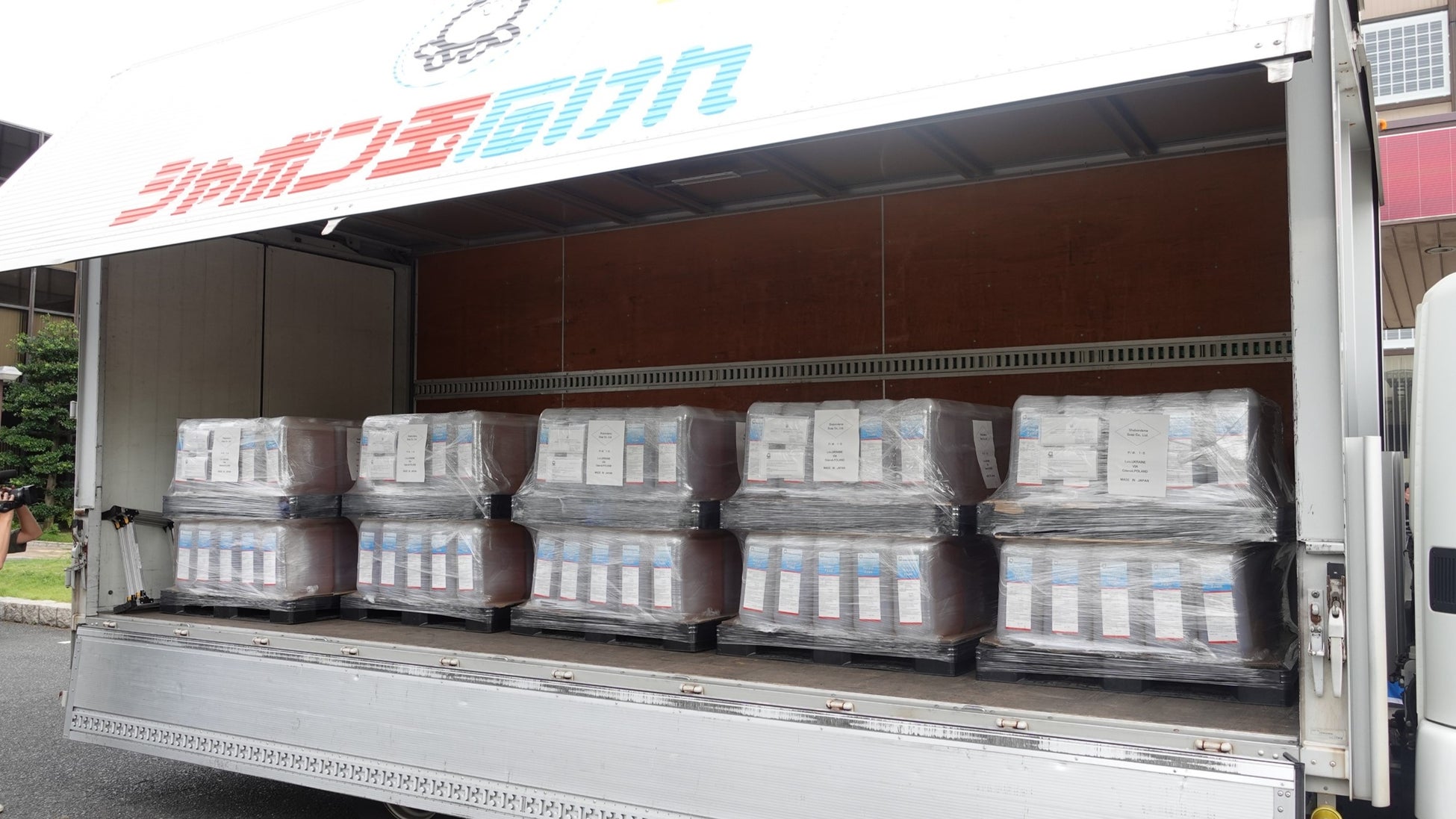 ■輸送:8月17日にシャボン玉石けんから出荷し、門司港からポーランドまで船便で輸送。ポーランドからウクライナまで陸送。10月末頃納品予定
