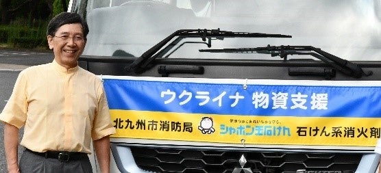 2023年8月17日の午前中、シャボン玉石けんが開発製造した「石けん系消火剤」のウクライナへの人道支援への「出発式」が、北九州市庁舎で開催されました。私が、「では、出発!」と掛け声をかけ、20リットル入消火剤タンク150本を搭載したトラックは門司港に向かいました。10月中には船便のポーランド経由でウクライナの国家非常事態庁の消防チームに届く予定です。 「石けん系消火剤」は2006年に開発に成功しましたが、私は当時からその取材を続け、ミイラ取りがミイラになった感じでそのチームの一員となりました。今年の3月末、北九州市消防局、北九州市立大学、シャボン玉石けんとの会合で、「これをウクライナに人道支援として贈りたい」と提案したところ全員一致で賛同、その経費をシャボン玉石けんが「担います」と言ってくれたのです。 私は、在ウクライナ日本国大使館の松田邦紀大使にその意向を伝えたところ、即、ウクライナ非常事態庁に申し出てくれて支援が決まりました。日本大使館の大変な努力により、最初のウクライナとの会議(6月6日)からわずか2か月余で「出発式」にこぎつけることができたのです。 ウクライナでは理不尽なロシア攻撃で多くの国民が命を失っている、ミサイルやドローン、砲撃による火災も多発している。それらのニュース映像を見て、私たちにできることなどないという無念さを味わっていました。しかし、そうか、シャボン玉石けんの「エコ消火剤」があるじゃないかと思いました。戦争当事国の支援は国のレベルで行うしかないと思い込んでいましたが、シャボン玉石けんという中小企業でもできる貢献があったのです。松田邦紀大使は、「こういうケースは少なく、大使を超えて一日本人として大きな誇りを覚えている」とメッセージを寄せてくれました。 北九州市の「市の花」とウクライナの「国の花」は、どちらも“ひまわり”です。北九州市とウクライナのご縁を末永く大事にしていきたいですし、ウクライナに一日も早く平和な日が戻ることを祈っています。 北九州市で誕生した石けん系消火剤によって、ウクライナで一人でも失わずにすむ命が救われることになれば、これほどの喜びはありません。戦争当事国への応援を軍事・兵器支援ではない形で実現できたことは、今後の日本のウクライナ支援の望ましい形として広く理解されることを期待しています。 (写真・出発式での筆者) |