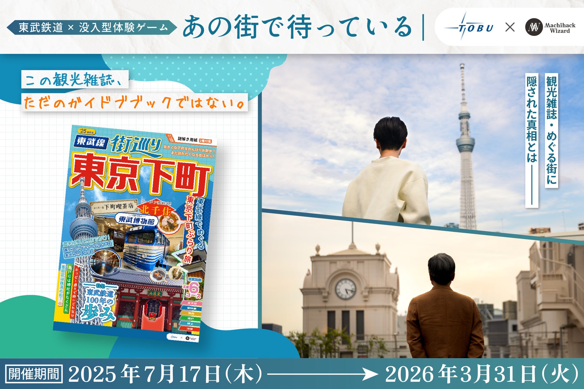 株式会社休日ハック(本社:東京都台東区、代表取締役社長:田中和貴)は、東武鉄道(本社:東京都墨田区、社長:都筑豊)と共に、東武沿線の魅力を再発見できる没入型体験イベント「あの街で待っている」を2025年7月17日(木)から2026年3月31日(火)まで期間限定で開催します。