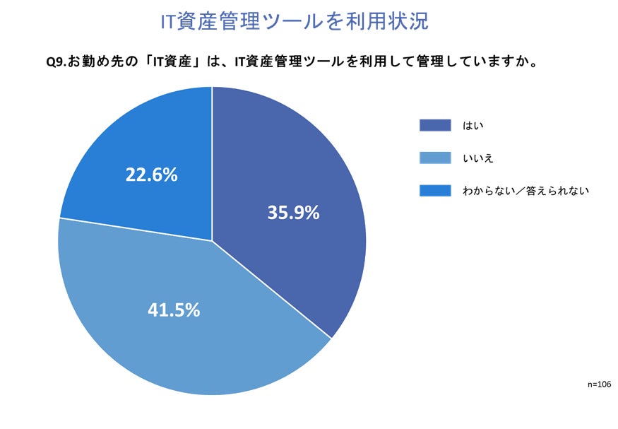 「Q9.お勤め先の「IT資産」は、IT資産管理ツールを利用して管理していますか。」と質問したところ、「はい」が35.9%という回答となりました。