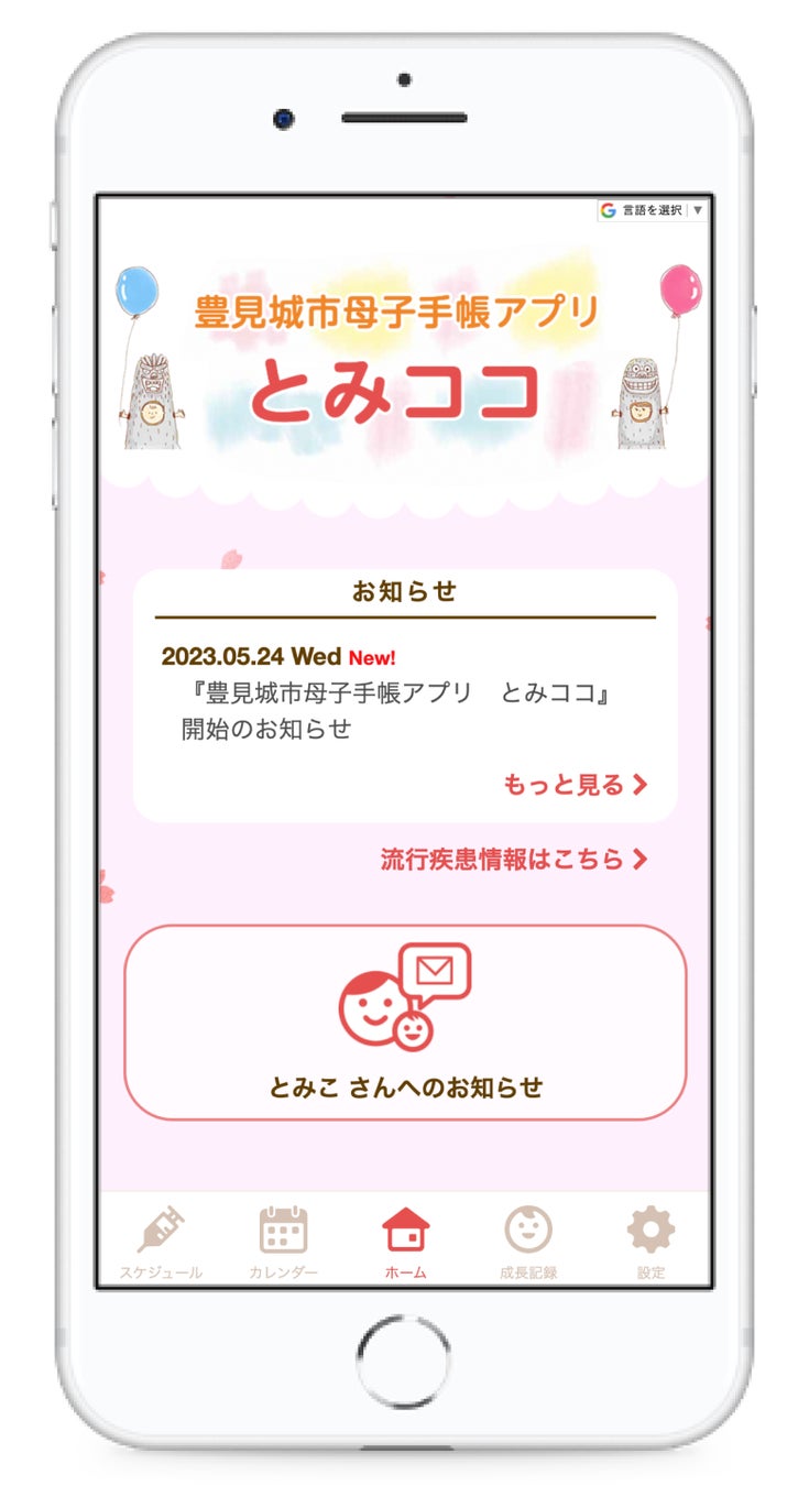 この度、妊娠期から子育て期の方が利用できる「母子手帳アプリとみココ」の運用を開始いたしました。子育て世帯に役立つ情報の配信、成長記録、予防接種のスケジュール管理などデジタルを活用して、安心して子育てができるようにサポートしてまいります。ぜひ、ご活用ください。