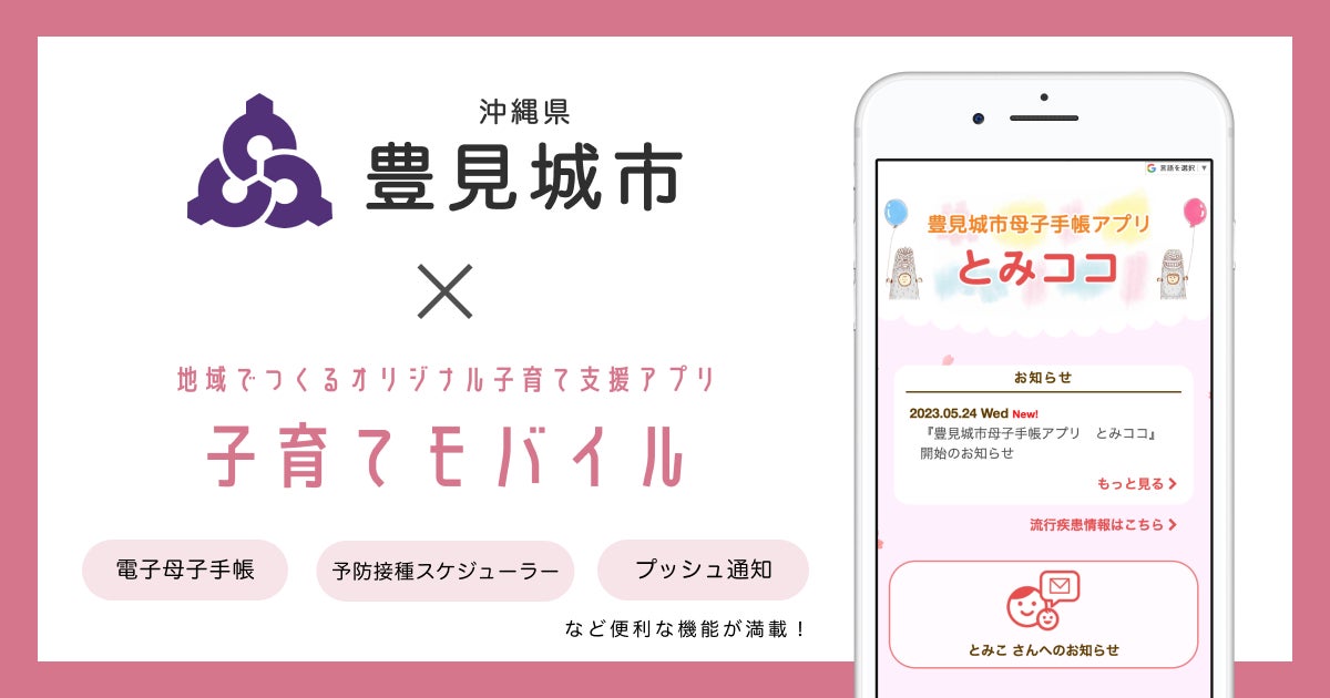 自治体向けサービスを開発する株式会社ミラボ(本社:東京都千代田区、代表取締役:谷川一也、以下「ミラボ」)の子育て支援アプリ「子育てモバイル」が、沖縄県 豊見城市に導入され、「豊見城市母子手帳アプリ とみココ」として5月24日より提供を開始します。