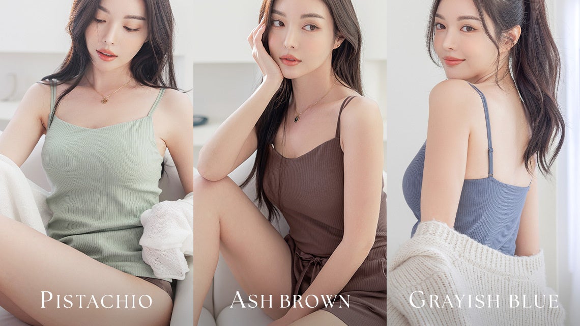 シリーズの中でも、特にファッションアイテムとして活躍することもできる、リブキャミ浅V型からお客様の声にお応えした新色「アッシュブラウン」「グレイッシュブルー」「ピスタチオ」が登場しました。