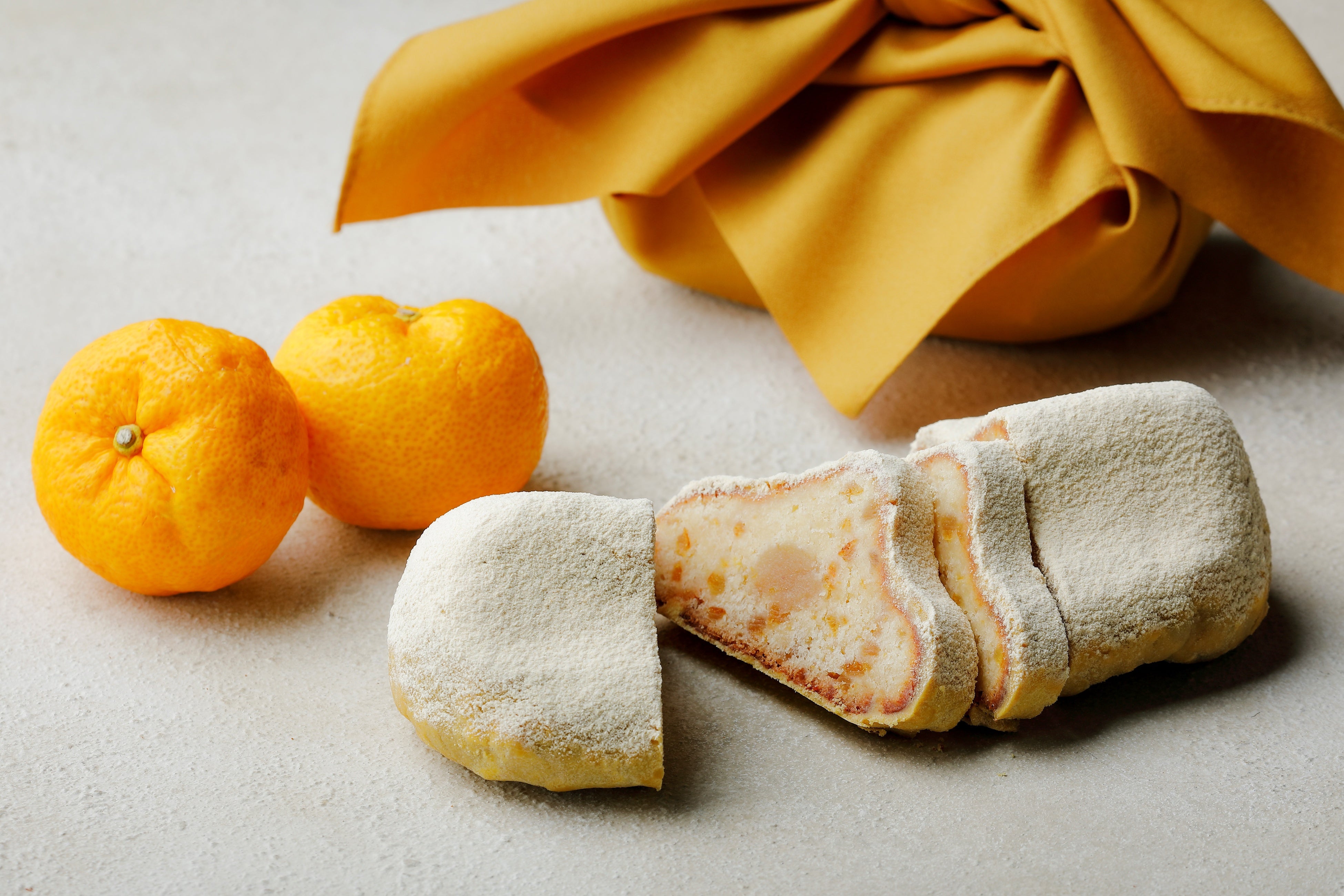 柚子オイルとペーストを加えた特製マジパンペーストを中心に包み込み、焼き上げた後には丁寧にバターを染み込ませ、仕上げに柚子パウダーを加えた粉糖でコーティング。ひと口ごとに柚子の風味がふわりと広がる、見た目にも涼やかで、夏らしい一品に仕上げました。