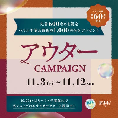 “ペリエ千葉お買物券1,000円分プレゼント”【11月3日(金・祝)~11月12日(日)】
