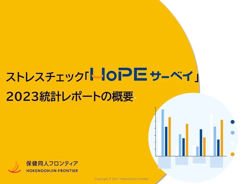 株式会社保健同人フロンティア(本社:東京都港区、代表取締役社長:平塚 徹)が提供するストレスチェックサービス「HoPEサーベイ」につきまして、2023年度の実施状況をまとめた統計分析の概要をレポートいたします。本レポートの22年度版は、昨年7月に経済産業省第9回健康投資ワーキンググループでも紹介されました。健康経営を推進している企業には有意な効果が表れ、健康経営の重要性が明らかな結果となっています。