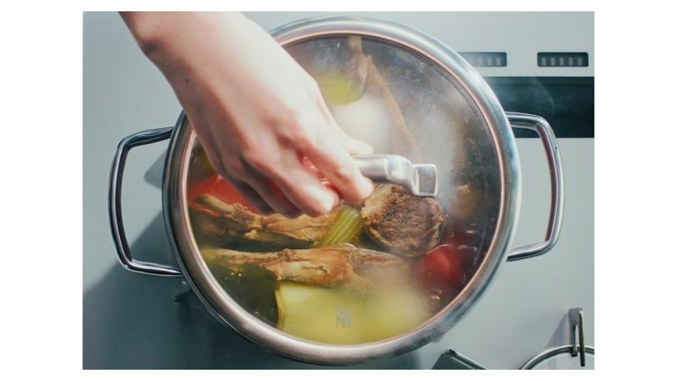 約30種類の天然鉱石を使用したWMF独自のミネラル素材「フュージョンテック」は、遠赤外線効果による加熱効果が高く、均一に、短時間で火が通るので素材の色や香り、風味はそのままに、料理を美味しく仕上げます。無水調理が可能で、水を加えずに食材が持つ水分で調理ができるため、食材本来の凝縮された旨みを味わうことができます。光沢のあるガラスのように滑らかな表面は、こびりつきにくく、使った後の汚れもスルッと落ちてお手入れも簡単。ガスやIHクッキングヒーターなど全ての熱源に対応し、食器洗浄機もお使いいただけるなど、使いやすさと丈夫さも兼ね備えており、長くお使いいただけます。