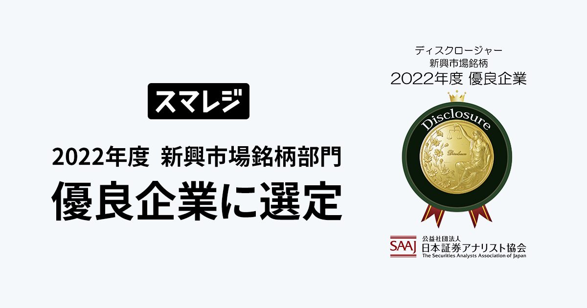 スマレジ、2022年度「証券アナリストによるディスクロージャー優良企業」に選定