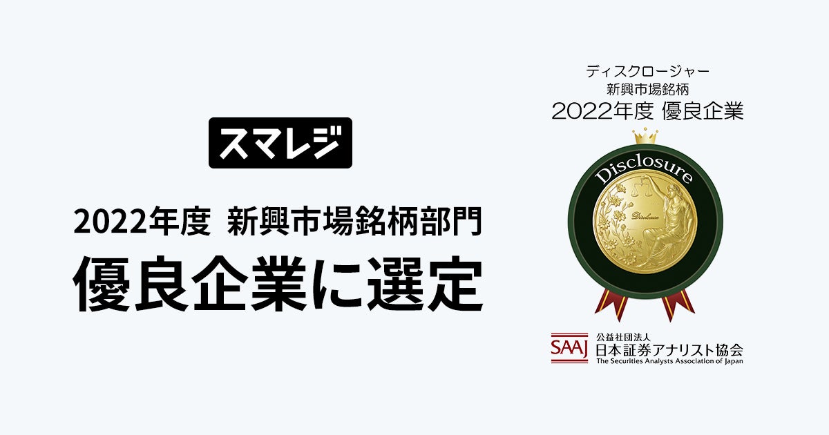 iPadなどのタブレットを利用したクラウドPOSレジ『スマレジ』を展開する株式会社スマレジ(本社:大阪市中央区、代表取締役:山本 博士、証券コード:4431)は、2022年度「証券アナリストによるディスクロージャー優良企業選定」の新興市場銘柄部門において、優良企業に選定されましたのでお知らせいたします。