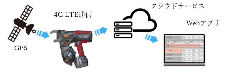 鉄筋結束機は、住宅基礎や鉄筋コンクリート構造物などの施工で必要な鉄筋結束作業を効率化する電動工具です。当社が提供する充電式鉄筋結束機本体に、KDDI株式会社のビジネスプラットフォーム「WAKONX※2」のアセットの一つであるIoTネットワークサービス「グローバルIoTアクセス」を組み込むことで、4G LTE通信とGPS機能を搭載しました。