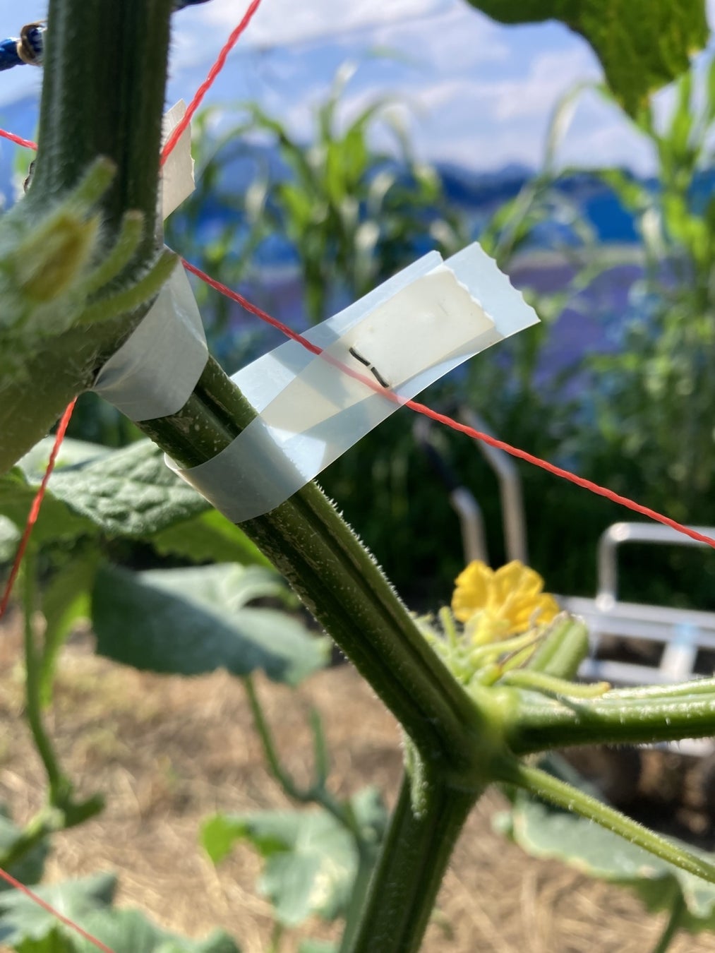 『生分解テープ』は、このような環境やSDGs達成に配慮した、生分解性樹脂を使用しています。土に埋めると微生物の働きで分解され、最終的に水と二酸化炭素になるため、地面から拾い集める手間が省けます。また、十分な結束保持力も備えているため、大玉トマトなどの重量がある作物にも使用可能です。