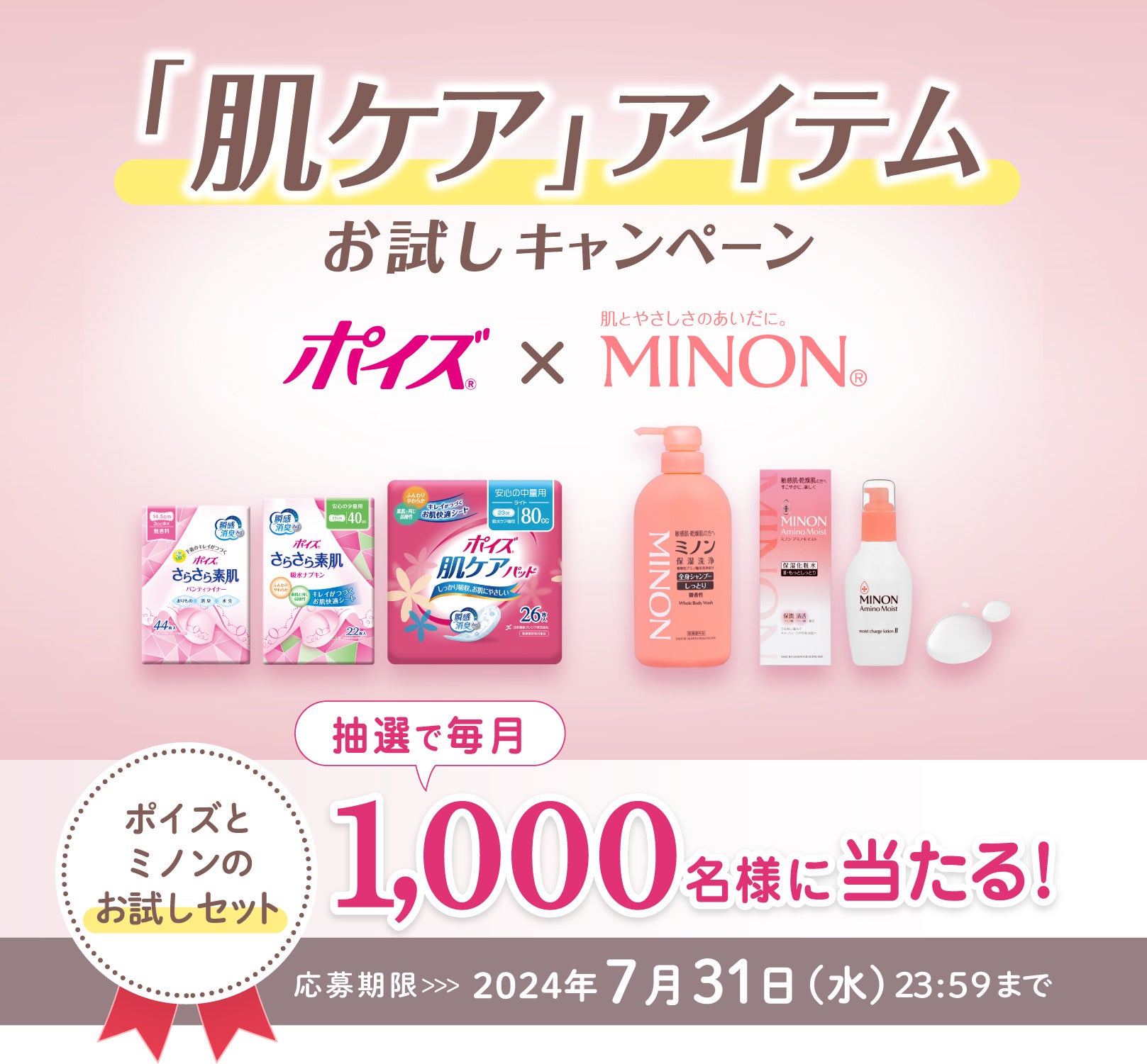 ポイズとミノンのお試しセットが抽選で毎月1,000名様に当たる!『「肌ケア」アイテムお試しキャンペーン』を実施