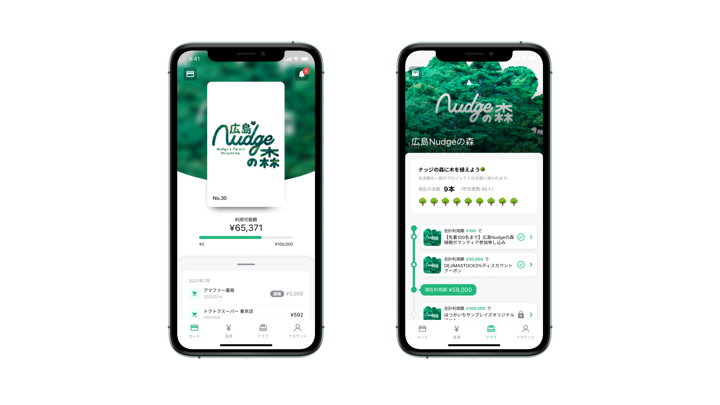 日本におけるチャレンジャーバンクを目指すナッジ株式会社(本社:東京都千代田区、代表取締役社長:沖田 貴史、以下「ナッジ」)は、2022年8月2日(火)、広島県東広島市入野財産区及び賀茂地方森林組合と協定を結び、次世代型クレジットカード「Nudge(ナッジ)」を利用することによって広島の森林再生に貢献ができる「広島Nudgeの森」クラブおよびクレジットカードの提供を開始しました。