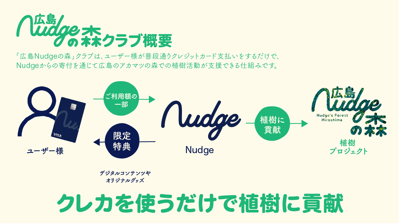 次世代型クレジットカード「Nudge」、キャッシュレスで森林再生に貢献できるクレジットカード誕生ー広島県東広島市入野財産区及び賀茂地方森林組合と協定締結