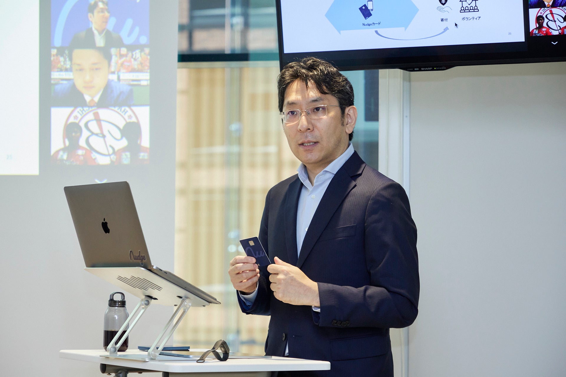 この度は、東広島市の関係者の皆様、協賛企業の皆様と連携して「広島Nudgeの森」が開設できることをとても喜ばしく感じています。Nudgeは、スポーツチームやアーティストのみならず、石川県小松市のような自治体や、動物保護活動を行うNPOのような非営利法人の活動を応援するカードとして、多くの提携先様にご活用いただいています。これからも、「広島Nudgeの森」をマイルストーンとして、官民幅広いステークホルダーの皆様と協働し、NudgeカードSDGsの達成にユーザーが気軽に貢献できるクラブの開設を進めてまいります。