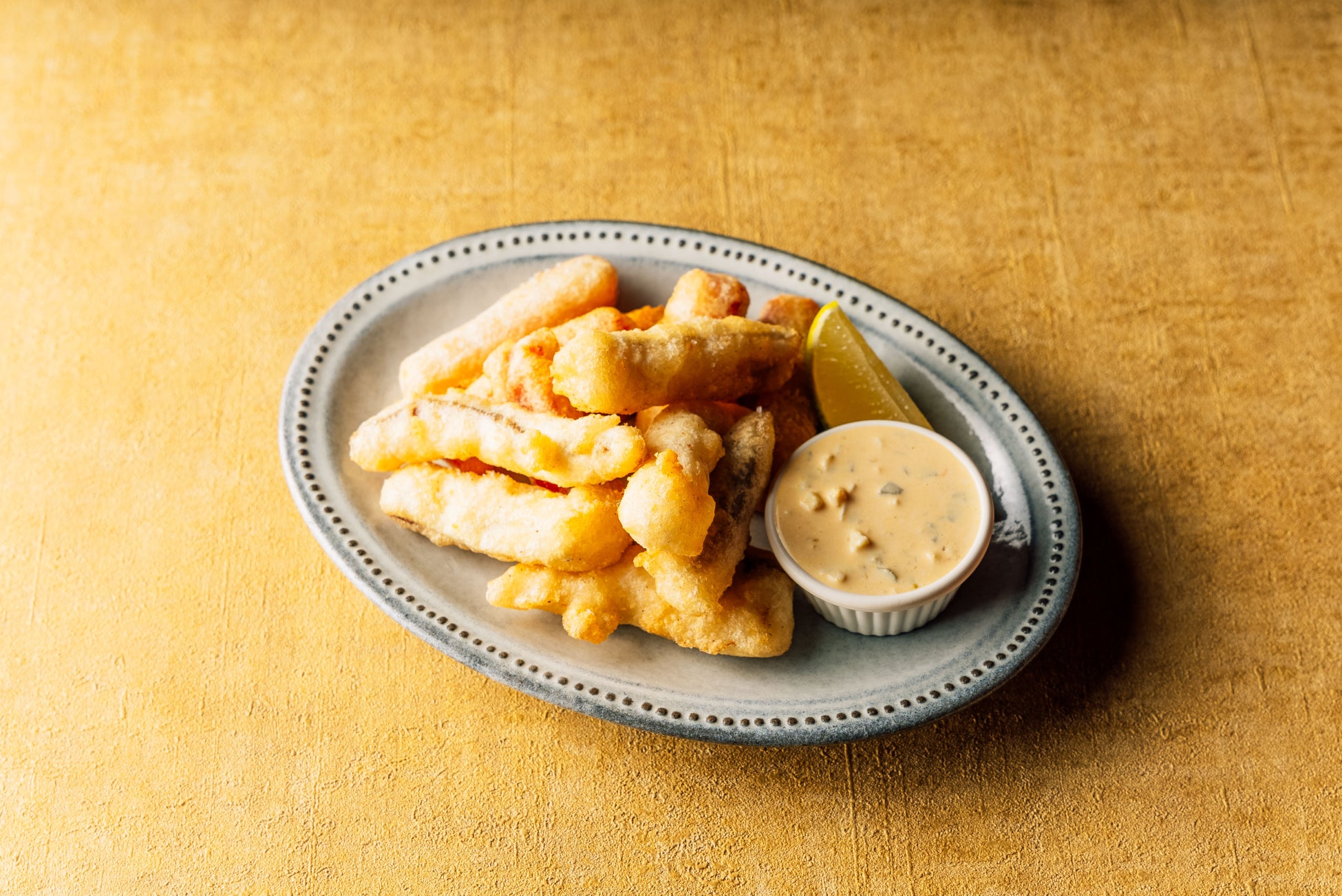 三つ星かんぱちと鹿屋くれない人参のビールフリット (タルタルソース) 900円