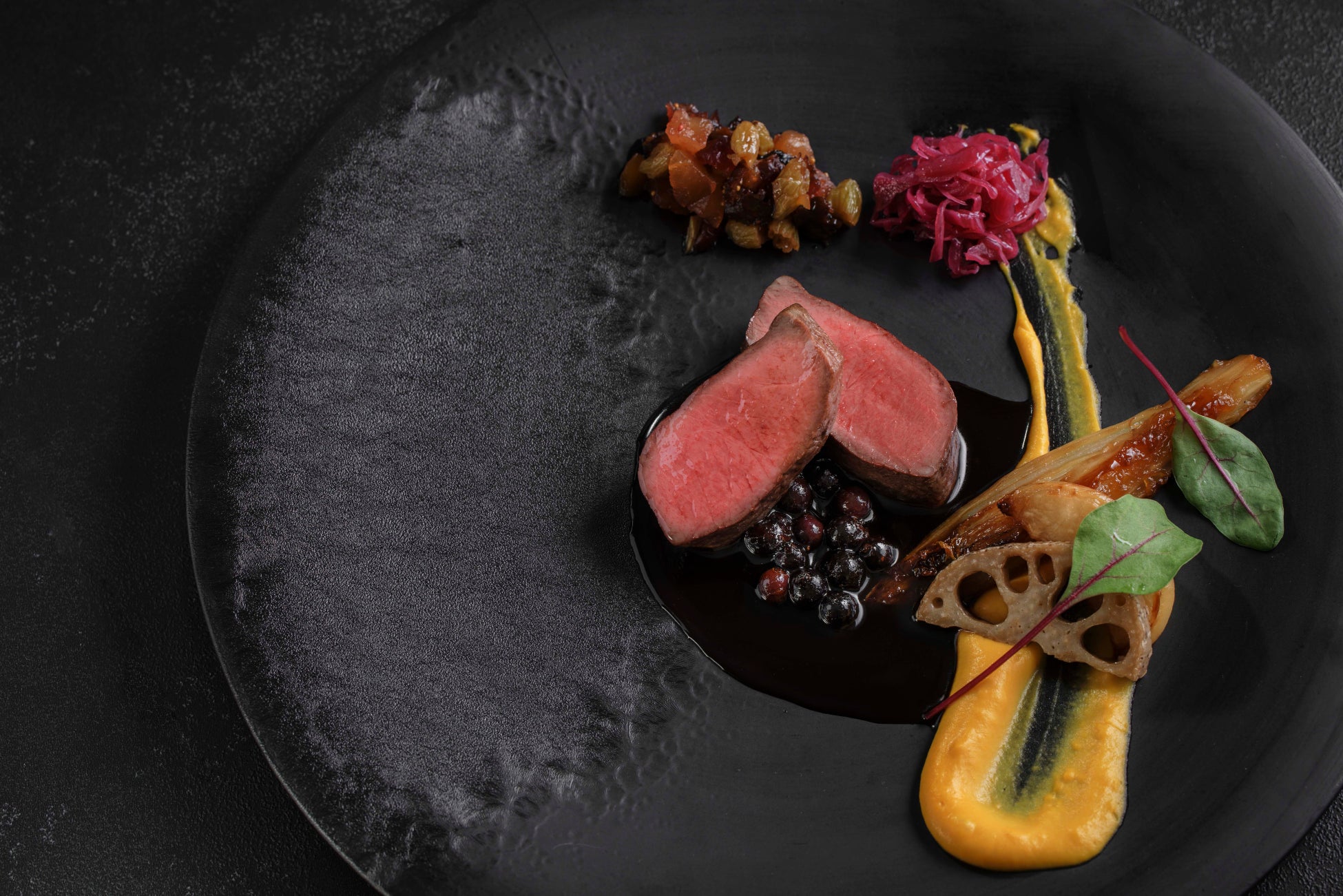秋から冬に移り変わる静岡の豊かな恵みを、一皿ごとにフレンチの技法で織り込んだ ディナー、“熱海キュイジーヌ”もご滞在の楽しみ。富士山サーモンのババロアとキャビアが味覚と食感に驚きをもたらすアミューズや、季節の美味を凝縮した伊豆鹿のロティーや秋刀魚のパイ包み焼きなど、総料理長が趣向を凝らしたお料理を存分にお楽しみください。