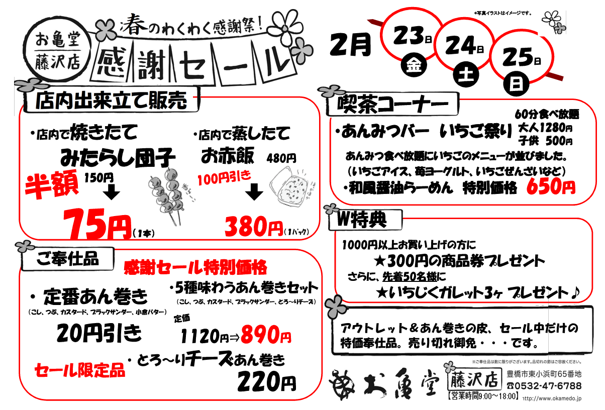 2月23日~25日に感謝セールを実施。今回のあんみつバーはいちご祭り。