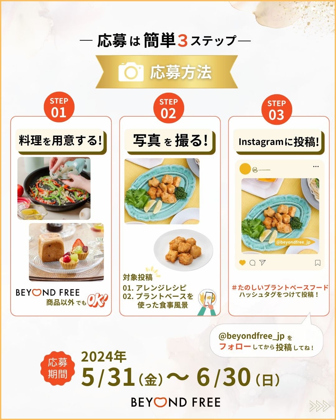「#たのしいプラントベースフード」フォトコンテストは、プラントベースフードを取り入れた食卓やプラントベースフードのレシピなど、自分なりのプラントベースフードの楽しみ方を表現した写真を、指定のハッシュタグをつけて投稿いただくフォトコンテストです。プラントベースフードは、どこか新しくて「特別なもの」と思われるかもしれませんが、実はとっても気軽に生活に取り入れることができます。今回、食育月間でもある6月に実施する本コンテストを通じて「食」についての関心を高め、プラントベースフードを上手に食生活に取り入れた様子を多くの方にご投稿いただくことで、さまざまな楽しみ方が周知され、「もっと気軽に日々の食生活の中にプラントベースフードを取り入れてみよう」という意識を共有しあうことが出来ればと考えております。