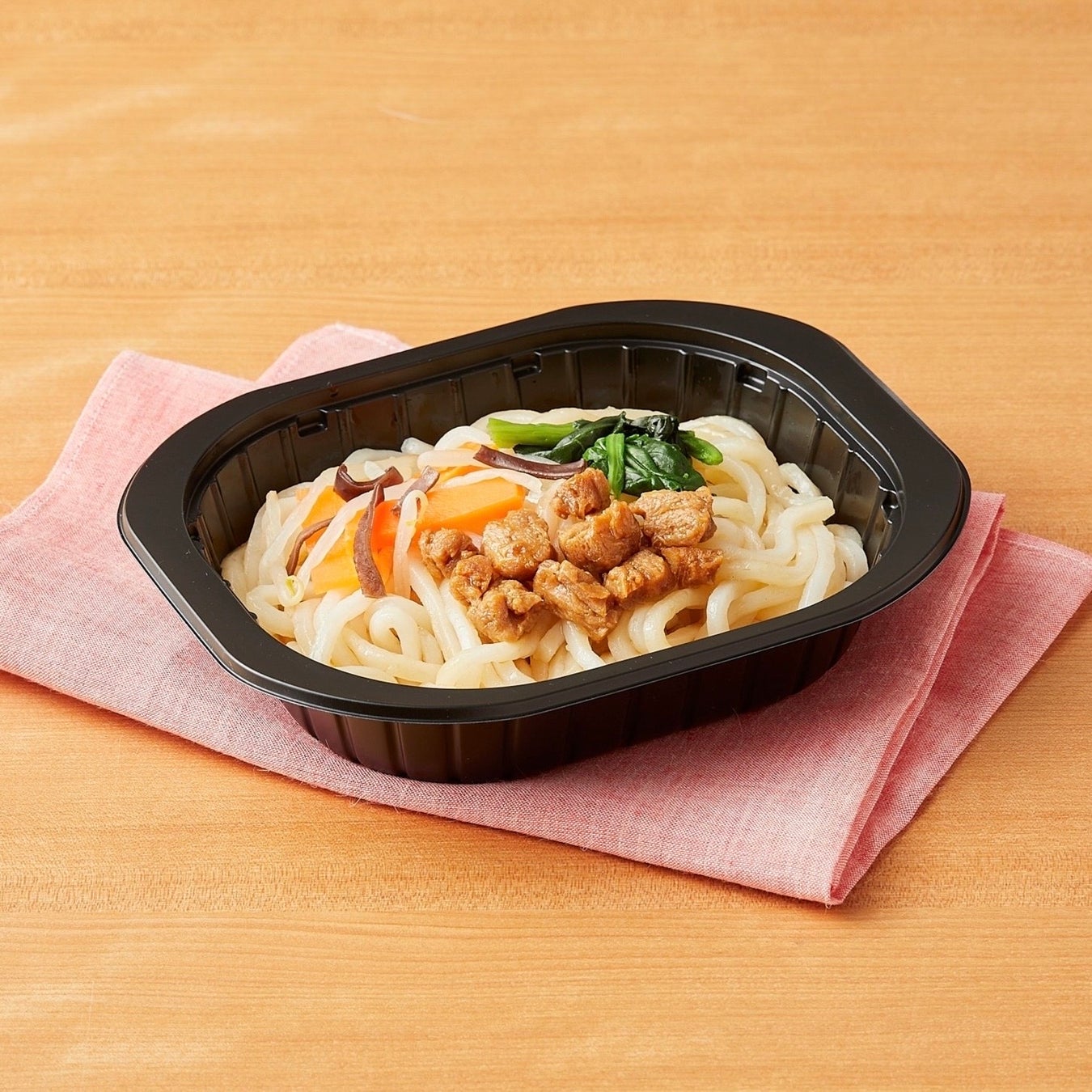 こんにゃく米を25%配合し、カロリーを32%カット(*)したヘルシーな炒飯です。 具材には、豆乳を搾る際の副産物「おから」と日本の伝統食である「こんにゃく」を組み合わせた「おからこんにゃく®」で作った卵・ハムチャーシューを採用し、動物性原材料を使用していません。 レンジでチンするだけの簡単調理で、こんにゃく米の食感が新しい本格炒飯の味わいをお楽しみいただけます。