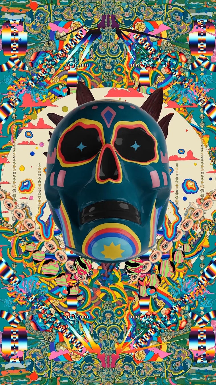 トレドは「私の作品は、世界中のさまざまな文化の象徴主義と神聖な芸術をベースにしています。Blue Desertは、曼荼羅や植物モチーフ、ポップアートのニュアンス、エジプトの石棺から連想した星空やアジア文化の第三の目など、異なる文化や宗教からのシンボル的な要素を、ヒスパニック以前の文化から着想を得た線や色彩で統合しました。私の地中海的なビジョンを通して、超現実的で夢のようなアプローチで統一した作品です。リヤドロとのコラボレーションで普段のデジタル環境から一歩踏み出し、世界中の人々の心に深く響く作品にしたい」と語ります。