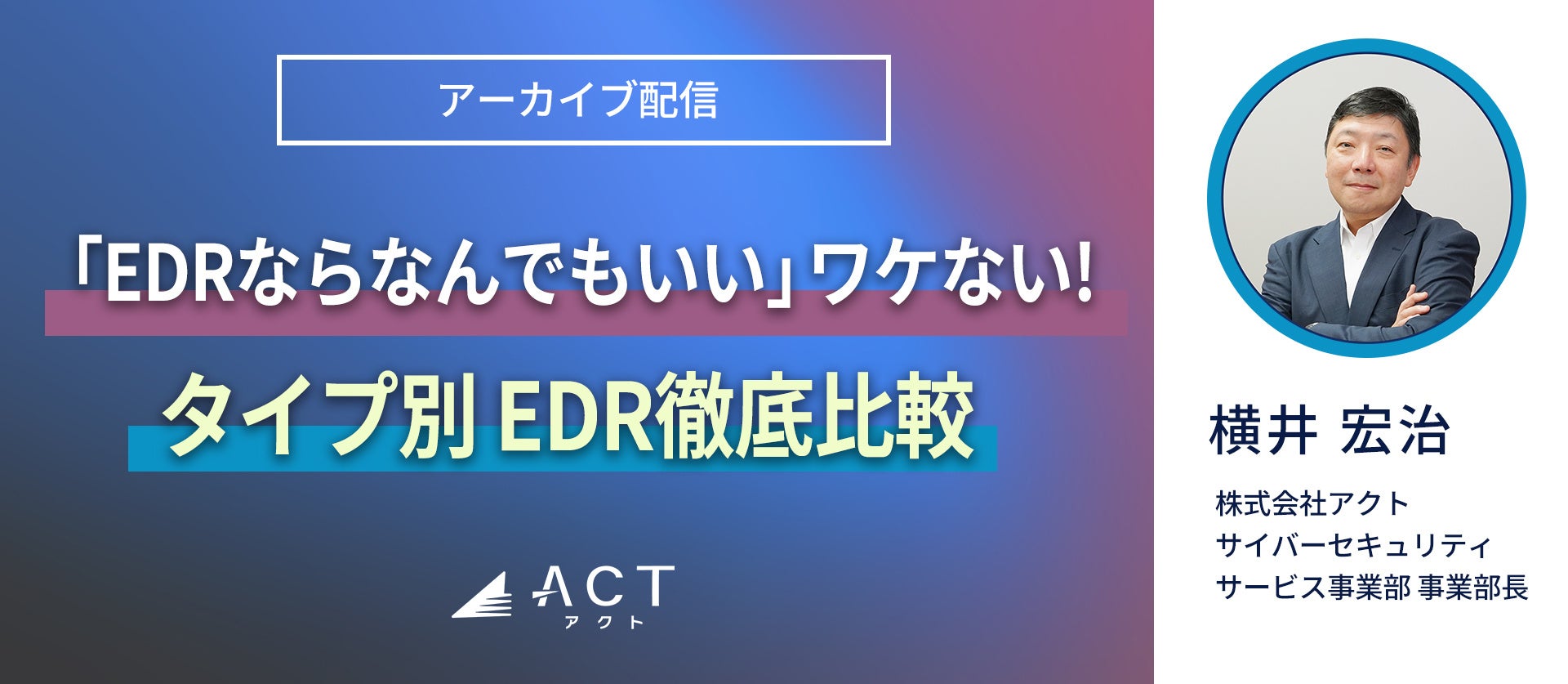 サイバーセキュリティ事業などを行う株式会社アクト(本社:東京都文京区、代表取締役CEO 小林 智彦 、以下 アクト)は、1/23(月)に実施されたウェビナー、「EDRならなんでもいい」ワケない!EDR徹底比較を本日よりアーカイブ配信を開始しました。