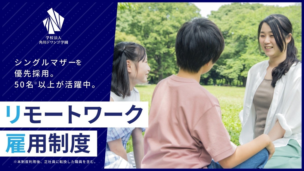 N高グループを運営する学校法人角川ドワンゴ学園では、2019年より「リモートワーク雇用制度」を導入し、シングルマザーを中心に個々の事情で通勤・移動を伴うフルタイム勤務に困難を抱える方を優先的に採用しており、2024年11月、本制度を利用する職員数が50名(※)を超えました。