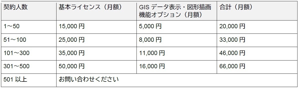 「GISデータ表示・図形描画機能」オプション料金(税抜)