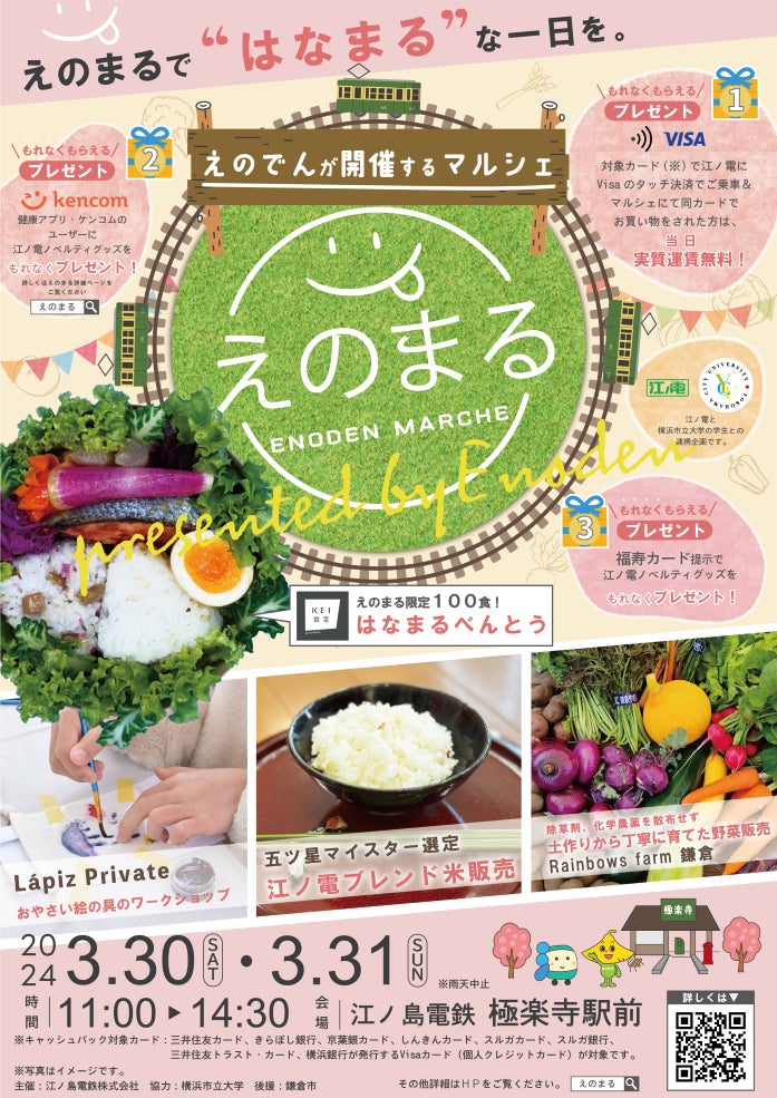江ノ島電鉄株式会社(本社:神奈川県藤沢市 社長:楢󠄀井 進)は、2024年3月30日(土)・31日(日)の2日間で、春の行楽シーズンにピッタリな極楽寺駅を舞台にした「えのでん・えのまるプロジェクト」を始動いたします。今回のプログラムとして、横浜市立大学(所在地:神奈川県横浜市 学長:相原 道子)国際商学部 原広司ゼミの植木チームの学生らが神奈川産学チャレンジプログラム(※)で最優秀賞を受賞した企画提案をアレンジしながら、江ノ電の事業フィールドを活用し、マルシェ(イベント名:「えのまる」)の開催を実現することとなりました。